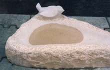 Vogelbad mit Vogel aus Comblachiene Kalkstein (Frankreich)