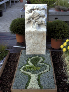 Aus ST.Michel Kalkstein (Frankreich) mit eingesetzten Natursteinen, Urnenbestattung.
