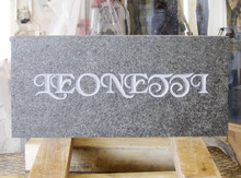 Schriftplatte in Tessiner Gneis graviert u.getönt